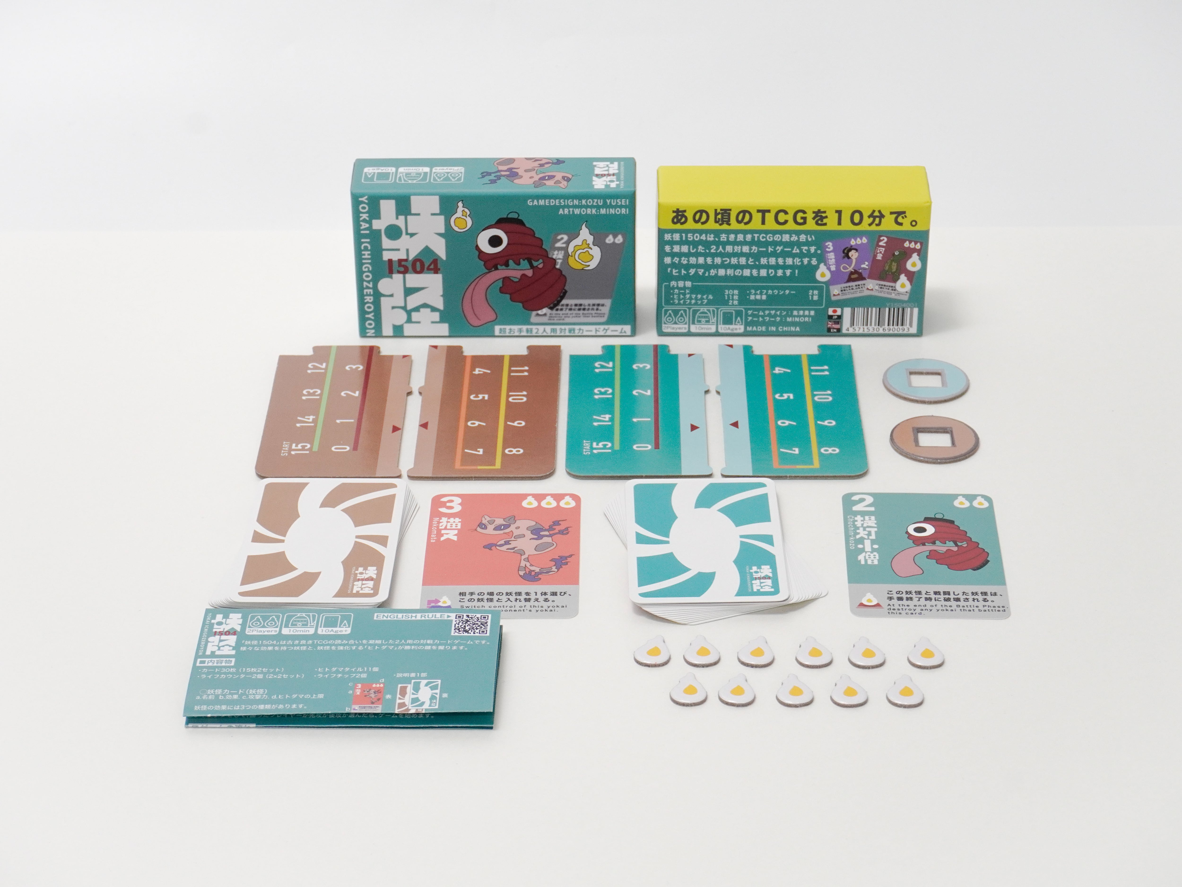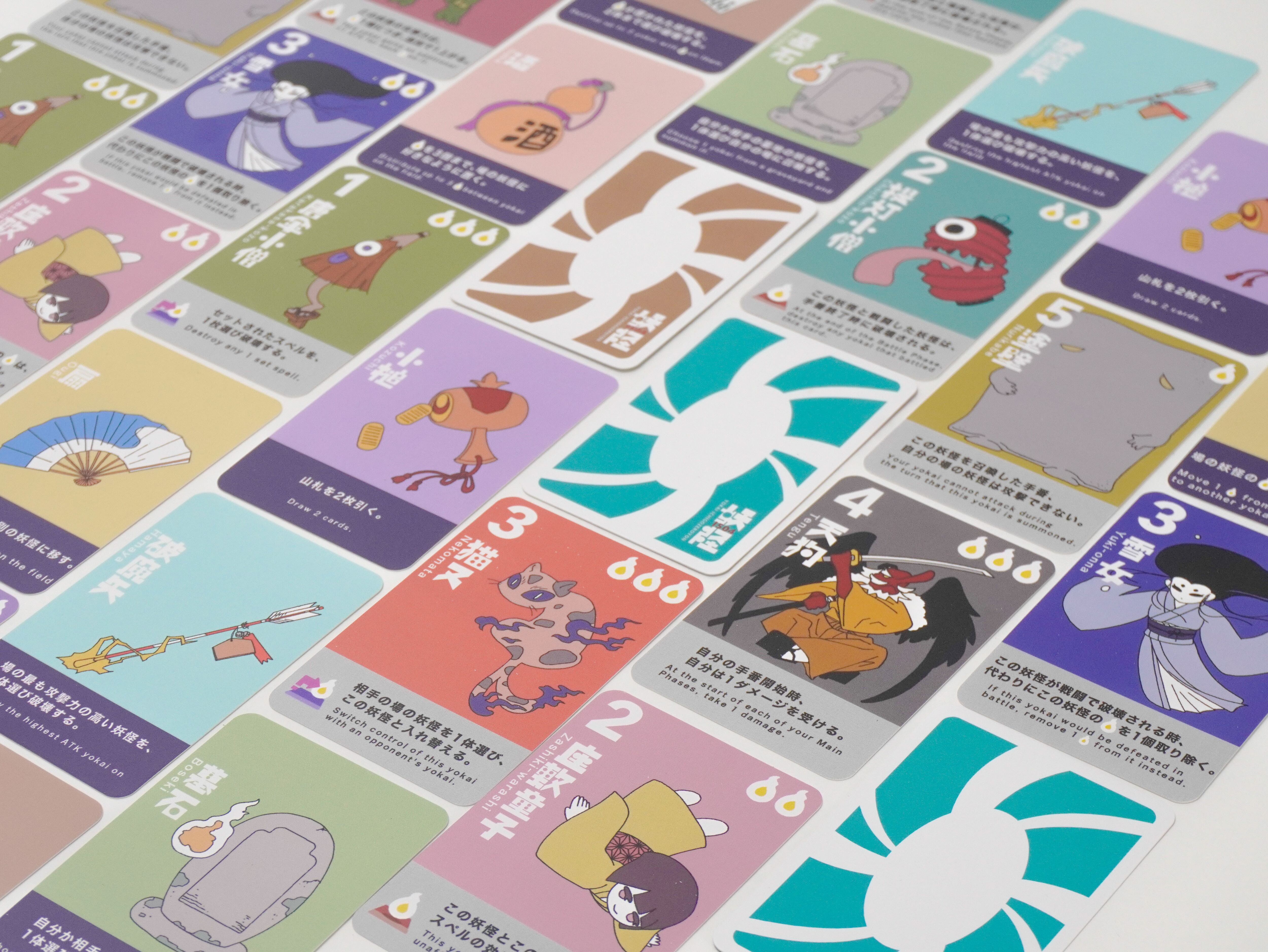 『あの頃のTCGを10分で。』 古き良きTCGの読み合いが楽しめる 超お手軽2人用妖怪カードバトルです。 ゲームマーケット2026春 頒布予定。 人数:2人 時間:10分 年齢:10歳以上 言語:日本語、英語